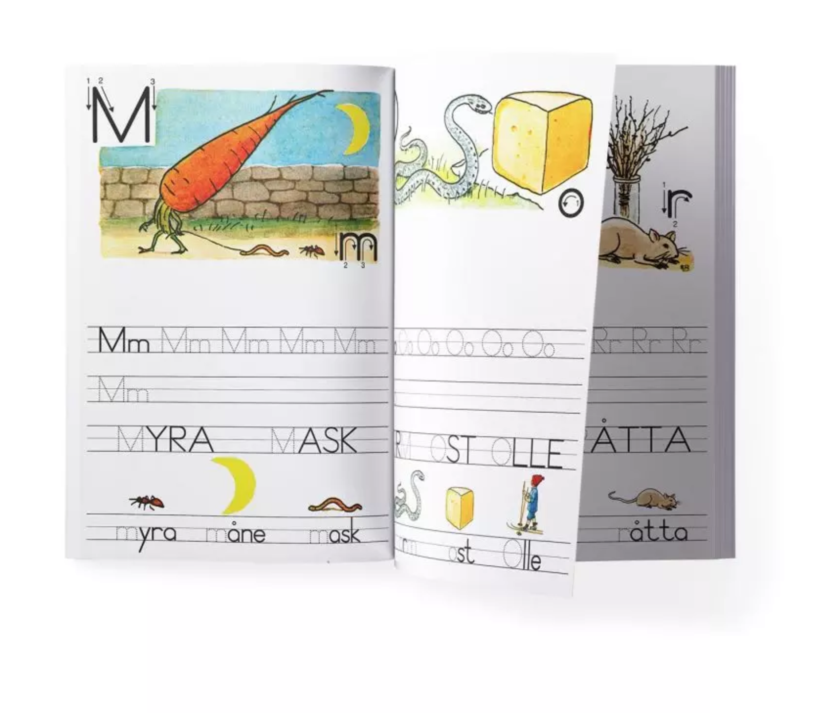 I detta häfte kombineras läsning och skrivning. Du ser bilden, läser ordet och skriver de bokstväver du lärt dig. Så småningom kan du skriva hela ord med stora och små bokstäver (versaler och gemena).